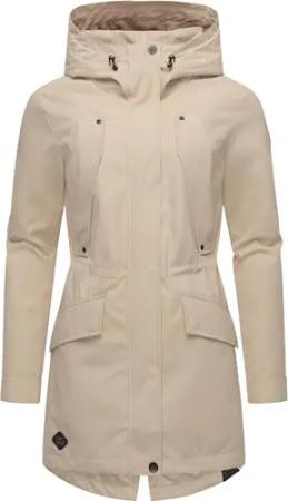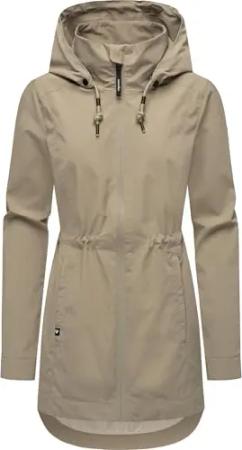 leichter Damen Übergangsparka langer Regenmantel wasserdicht und atmungsaktiv mit großer Kapuze Begonia YOUMODO Sand Gr. L