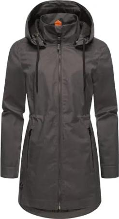 Damen Übergangsjacke leichte Jacke lang wasserdicht mit abnehmbarer Kapuze Dakkota II Dark Grey Melange Gr. S