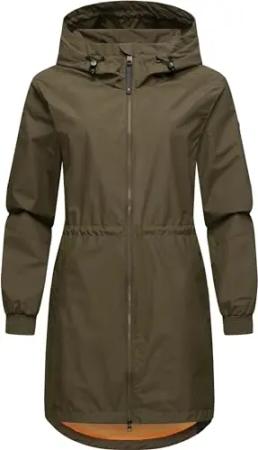 Damen lange Übergangsjacke wasserdichter und atmungsaktiver Kurzmantel mit verstellbarer Kapuze Zuzka Sport YOUMODO Dark Olive Gr. M