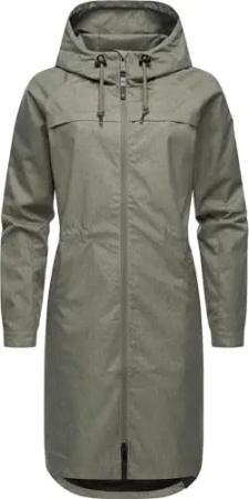 Damen lange Übergangsjacke wasserdicht und atmungsaktiv Parka mit abnehmbarer Kapuze und feiner Rillenstruktur Dakkota B YOUMODO Dusty Olive Gr. M