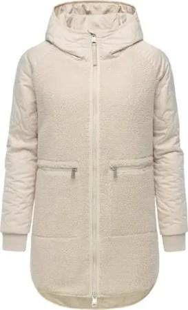 Damen Teddyfleece Kurzmantel warmer Plüschmantel mit Kapuze Longeddy YOUMODO Ecru25 Gr. M
