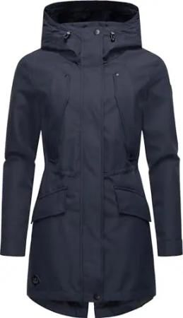 leichter Damen Übergangsparka langer Regenmantel wasserdicht und atmungsaktiv mit großer Kapuze Begonia YOUMODO Navy Gr. 4XL