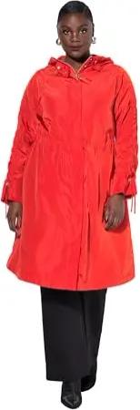 Damen große Größen Übergrößen Plus Size Mantel, A-Linie, wasserabweisend, Kapuzenkragen paprikarot 42+ 835277521-42+