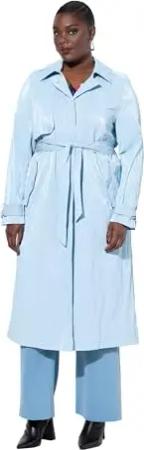 Damen große Größen Übergrößen Plus Size Trenchcoat, Metallic-Effekt, A-Linie, Hemdkragen, Gürtel himmelblau 50+ 834987706-50+