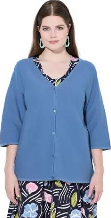 Damen große Größen Übergrößen Plus Size Strickjacke, V-Ausschnitt, 3/4-Arm, Biobaumwolle