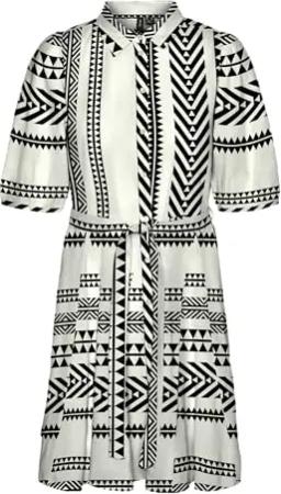 Damen Vmdicthe 2/4 Short Volume Dress WVN Ga Keid, Snow White/AOP:Ibiza Black, X-Large
