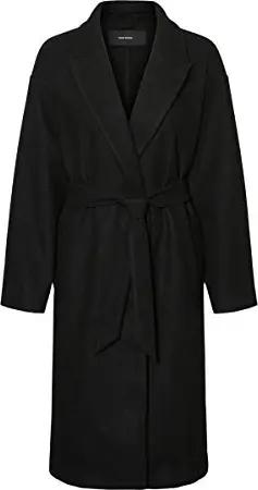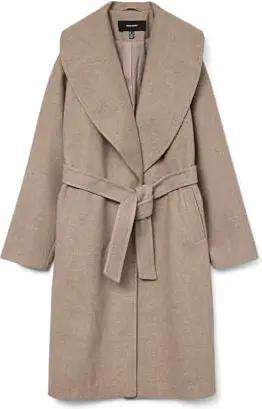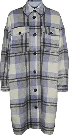 Damen Vmnelly Check Long Coat Noos Mantel, Light Grey Melange 1, S EU