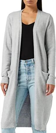 Clothes Damen Strickjacke VIRIL L/S Long Knit Cardigan - NOOS 14042770, Einfarbig, Gr. 42 (Herstellergröße: XL), Grau (Light Grey Melange)