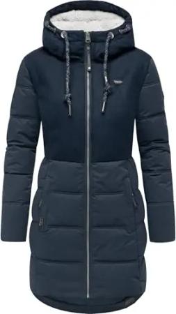 Damen Lange Steppjacke Wintermantel mit Kapuze Ashani Block Intl. Navy25 Gr. L