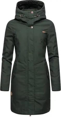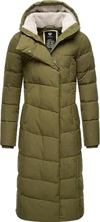 Damen Winterjacke langer Regenmantel Steppmantel wasserdicht warm gefüttert mit Kapuze Suminka Dark Olive Gr. M