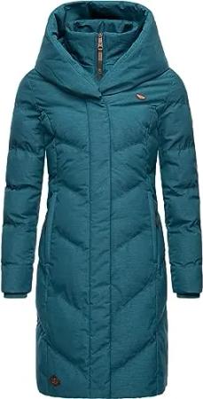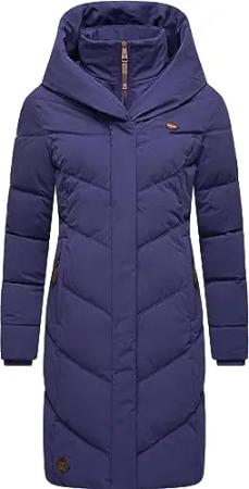 Damen Winterjacke langer Regenmantel Steppmantel wasserdicht warm gefüttert mit Kapuze Suminka Blue Gr. M