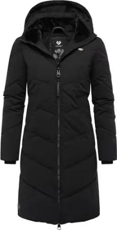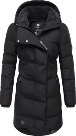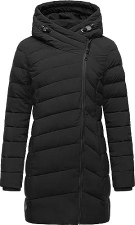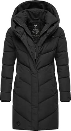 Damen Wintermantel warmer wasserdichter Steppmantel lang mit Kapuze Dizzie Coat Black Gr. S