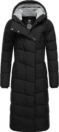Damen Wintermantel Warmer wasserdichter Steppmantel lang mit Abnehmbarer Kapuze Rebelka Extralong Black Gr. L
