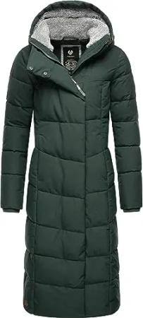 Damen Wintermantel Warmer wasserdichter Steppmantel lang mit Abnehmbarer Kapuze Rebelka Extralong Dark Green Gr. S