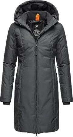 Damen Winterjacke langer Regenmantel Steppmantel wasserdicht warm gefüttert mit Kapuze Suminka Black Gr. L