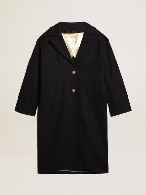 Einreihiger Damenmantel Im Cocoon Stil Aus Dunkelblauer Wolle Mit Goldenen Knöpfen, , Größe: 36