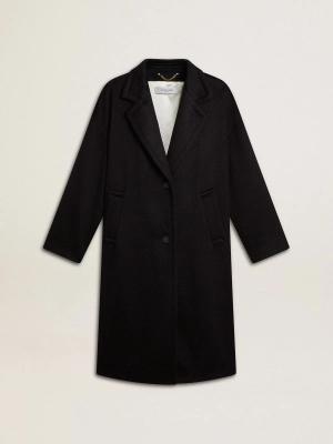 Schwarzer Damen-cocoonmantel Mit Einreihigem Verschluss, Frau, Größe: 38