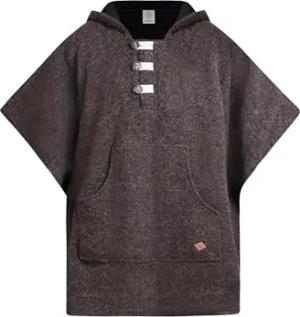 Poncho Herren Wolle | Wolle & Polarfleece | Herren Poncho Winter warm Deckenponcho mit Fleece und Kapuze- Arriba Wool braun