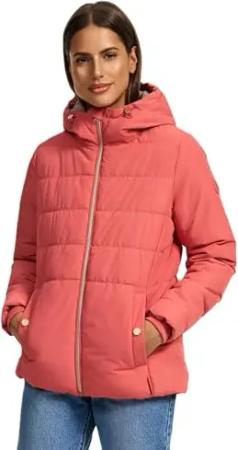 Damen Winterjacke (XS-3XL) - Steppjacke, Kapuze mit Gummizug, im inneren mit Fleecestoff, Warme Jacke Frauen - N026 (M, Rouge)