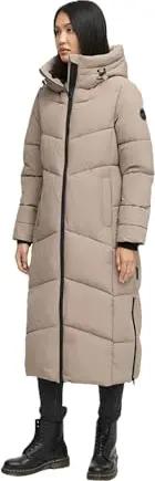 Damen Wintermantel Warmer Steppmantel lang mit Verstellbarer Kapuze Armasa Taupe Grey Gr. S