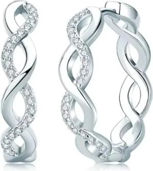 925er Silber Creolen Damen mit Moissanit gedrehte Design-Ohrringe zertifiziert & mit Schmuckbox 20 mm Ø eleganter Ohrschmuck für Frauen