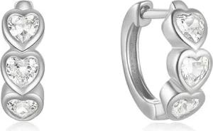 Creolen mit Herzkristallen Silber925 Ohrringe in Silber Weiß Herz Kristalle 1cm Durchmesser Damenohrringe Ohrschmuck Kreolen Damenschmuck Kristallcreolen (Silber)