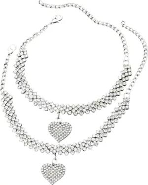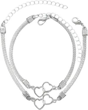 Karma NH10824227 Fußkettchen & Armband Schmuckset mit Herz-Anhänger Silber 2er Set Damenarmband und Fusskette Armschmuck Fußschmuck Urlaub Strand Abendmode Accessoires