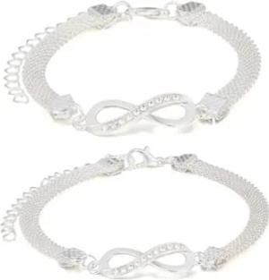 Fußkettchen und Armband Schmuckset mit Infinity-Anhänger Silber 2er Set Damenarmband und Fusskette Armschmuck Fußschmuck Urlaub Strand Abendmode Accessoires (Silber)