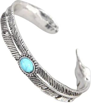 Karma NH10257164 Armreif Damen Altsilber Türkis Boho 5,5 cm vintage Design Modeschmuck Geschenkidee Damenschmuck Damenarmreif Silber Legierung Federn