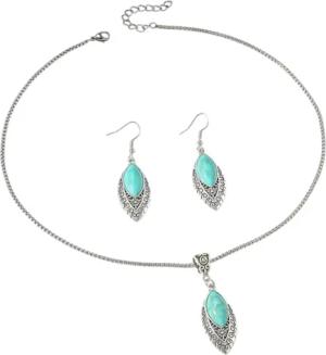 Karma NH10492024 Schmuckset Boho Altsilber Türkis Damen Halskette 44 cm Karabinerverschluss Ohrrringe eleganter Schmuck Steinschmuck Silber
