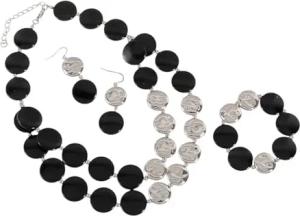 Karma NH11046030 Schmuckset Damen Schwarz Silber Acryl Damenarmband, Ohrringe und Halskette Armschmuck Kette Ohrschmuck Geschenkset für Frauen (Schwarz Silber)