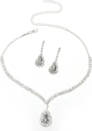 Karma NHKQ684808 Schmuckset Kristall Damen Edelstahl Silber Halskette 35 cm Karabinerverschluss Anhänger Ohrringe eleganter Schmuck Damenschmuckset Kette