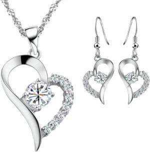Karma SS3002 Schmuckset Herz Zirkon Damen Legierung Halskette 40 cm Karabinerverschluss Ohrrringe eleganter Schmuck Edelsteinschmuck