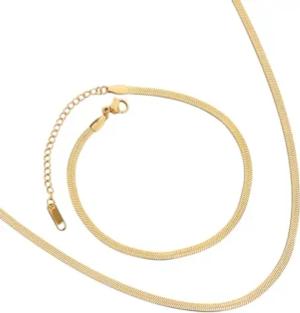 Karma NH10070978 Schmuckset Damen Gold Edelstahl vergoldet Halskette und Armband Kette Gliederkette Gliederarmband Geschenkset für Frauen
