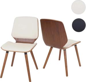 2er-Set Esszimmerstuhl Malmö T501, Retro Design ~ schwarz, Sitzfläche Kunstleder weiß, dunkle Beine
