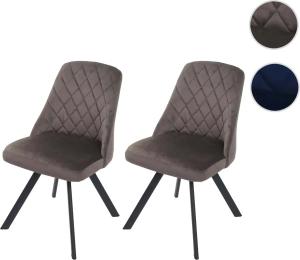 2er-Set Esszimmerstuhl HWC-K25, Küchenstuhl Lehnstuhl Polsterstuhl, Metall Samt ~ dunkelbraun