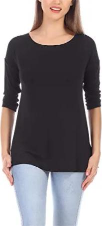 Langes Oberteil Shirt mit Spitze MS10-318 (Schwarz, XXL)