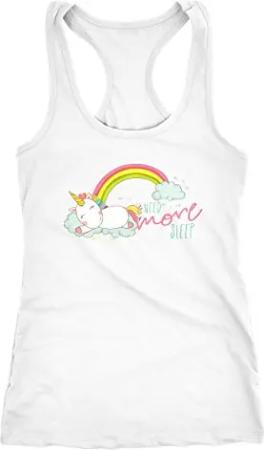 Damen Tanktop schlafendes Einhorn auf Wolke Need More Sleep Sleeping Unicorn Sprüche Spruch Weiss L