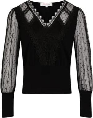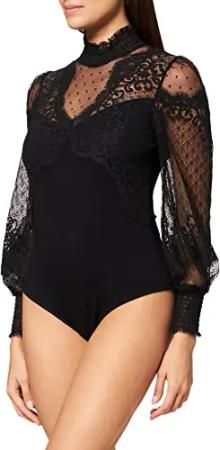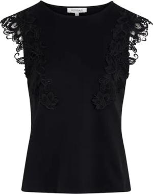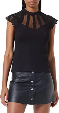 T-Shirt, kurzärmelig, mit Spitze, Schwarz, Größe S