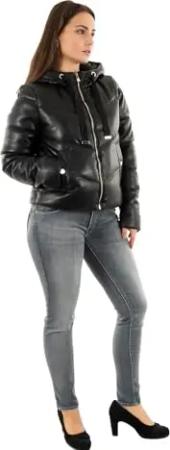Damen-Daunenjacke mit langen Ärmeln, Schwarz, Größe 40