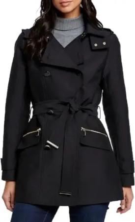 Damen-Trenchcoat mit Kapuze und Reißverschluss, Metall, 241-GLADIA, Schwarz, Größe 36