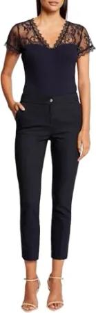 T-Shirt, kurzärmelig, Spitze, Marineblau, Größe S
