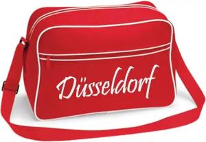 Retrotasche - Düsseldorf - Schriftzug - Druck weiß - Tasche Größe one size rot/weiß