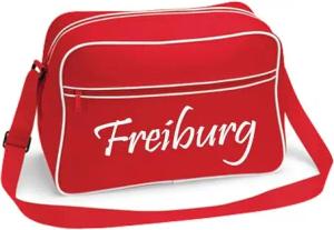 Retrotasche - Freiburg - Schriftzug - Druck weiß - Tasche Größe one size rot/weiß