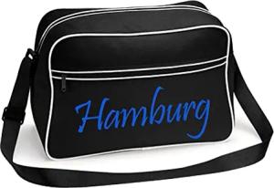 Retrotasche - Hamburg - Schriftzug - Druck blau - Tasche Größe one size schwarz/weiß
