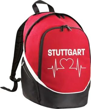 Rucksack - Stuttgart - Herzschlag - Druck weiß - Tasche Größe one size rot/schwarz