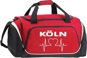 Sporttasche - Köln - Herzschlag - Druck weiß - Tasche Größe one size rot/schwarz
