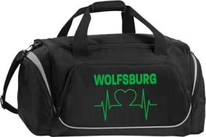 Sporttasche - Wolfsburg - Herzschlag - Druck grün - Tasche Größe one size schwarz