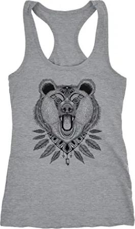 Damen Tank-Top Bär Boho Bear Zentangle Bohemian Atzec Federn Racerback grau XL