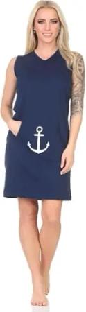 Damen Nachthemd Strandkleid Beachwear in maritimer Optik - auch in Übergrößen, Farbe:Marine, Größe:40-42